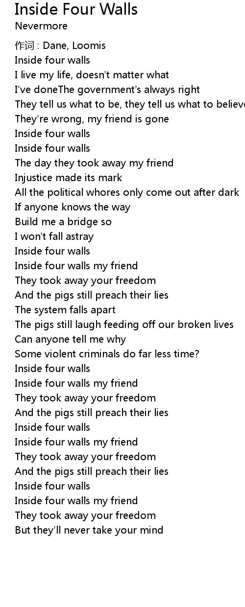 | 歌曲 | Inside Four Walls |