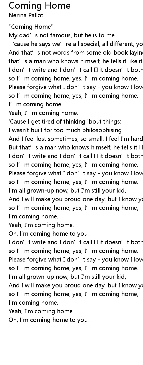 | [01:56.68] | so I' m coming home, yes, I' m coming home. |