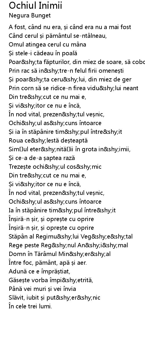 | 歌曲 | Ochiul Inimii |