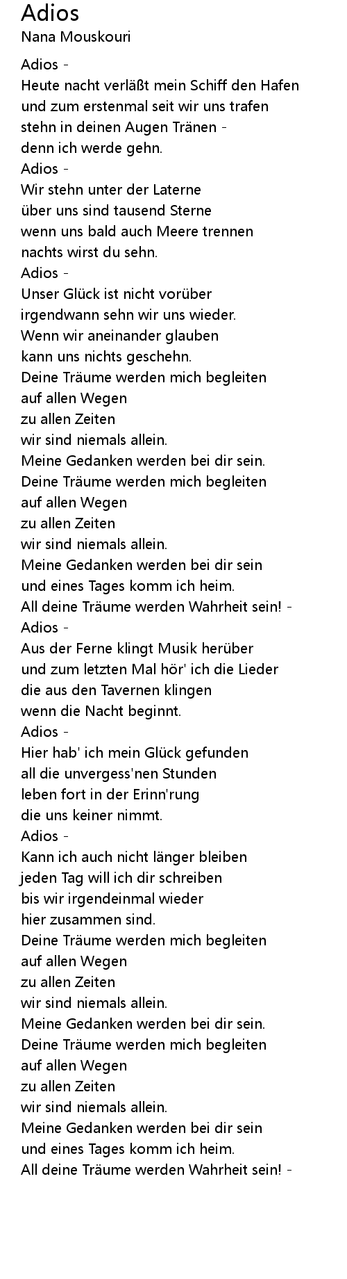 | Heute nacht verläßt mein Schiff den Hafen | |