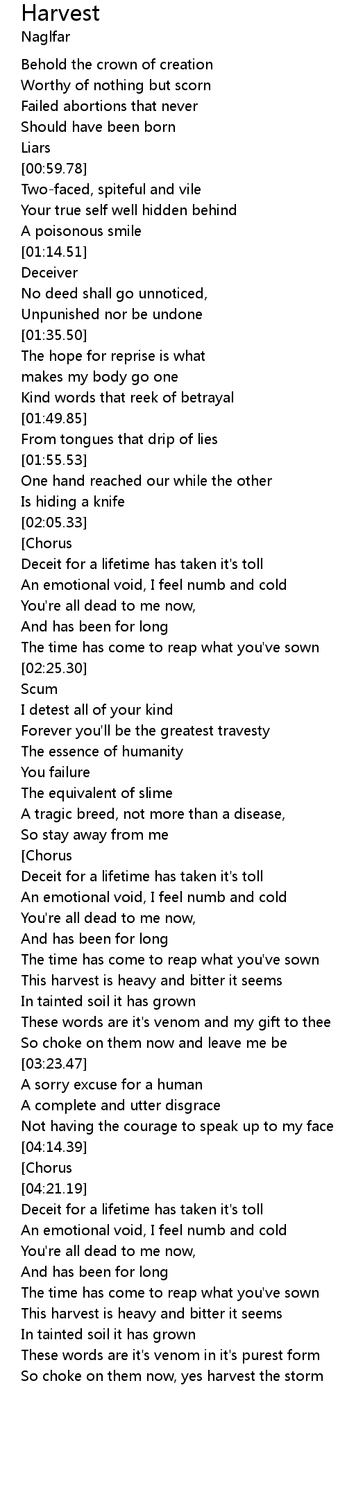 | [04:48.91] | This harvest is heavy and bitter it seems |