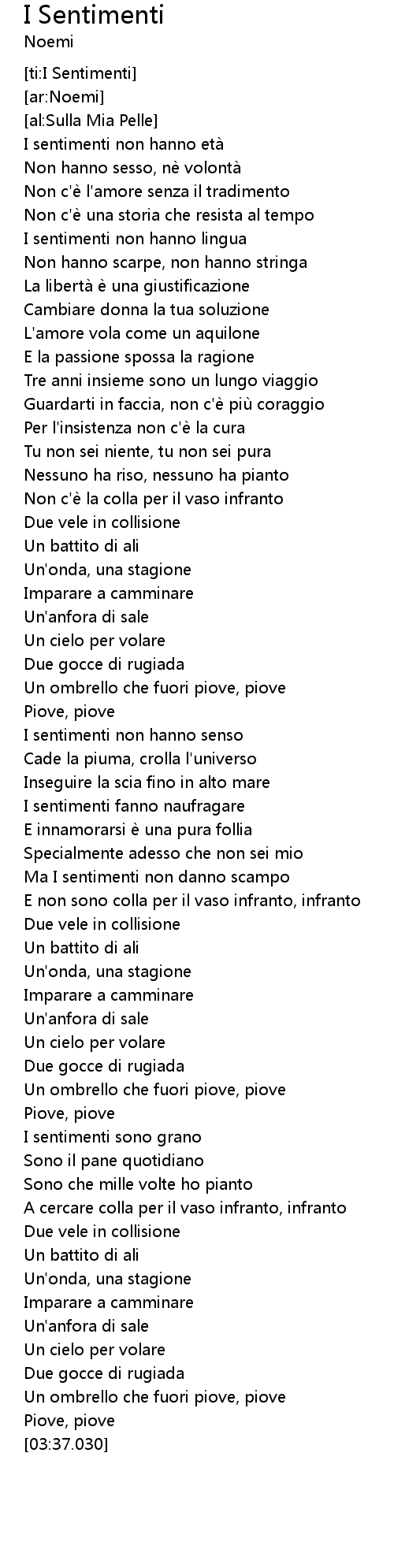 | [03:22.280] | Un ombrello che fuori piove, piove |