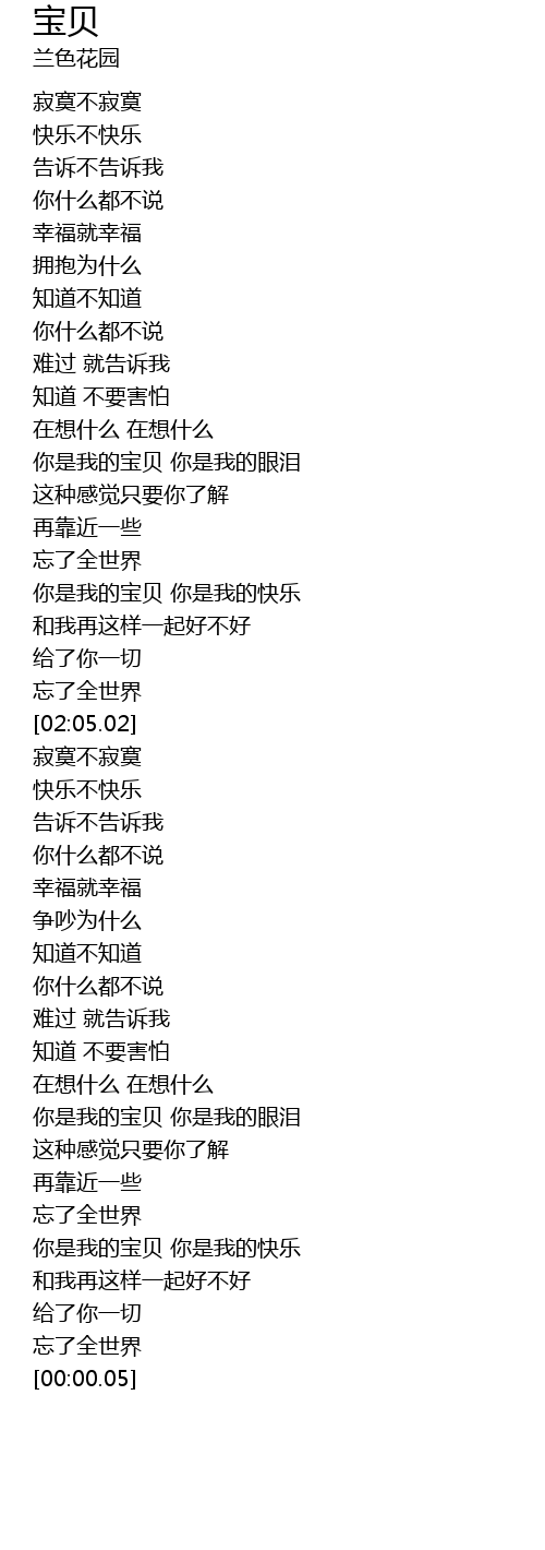 | [01:41.62] | 你是我的宝贝 你是我的快乐 |