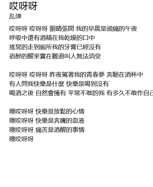 | 哎呀呀 哎呀呀 眼睛張開 我的早晨是頭痛的午後 | |