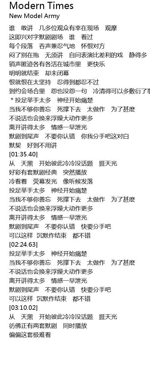 | [01:21.46] | mo ju dao wei sheng bu yao ni ren cuo ni wo fen shou ba zhe dui bai |