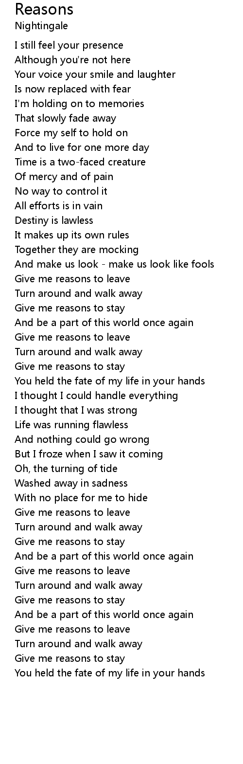 Give me reasons to stay |
