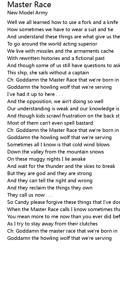 Ch: Goddamn the master race that we're born in |