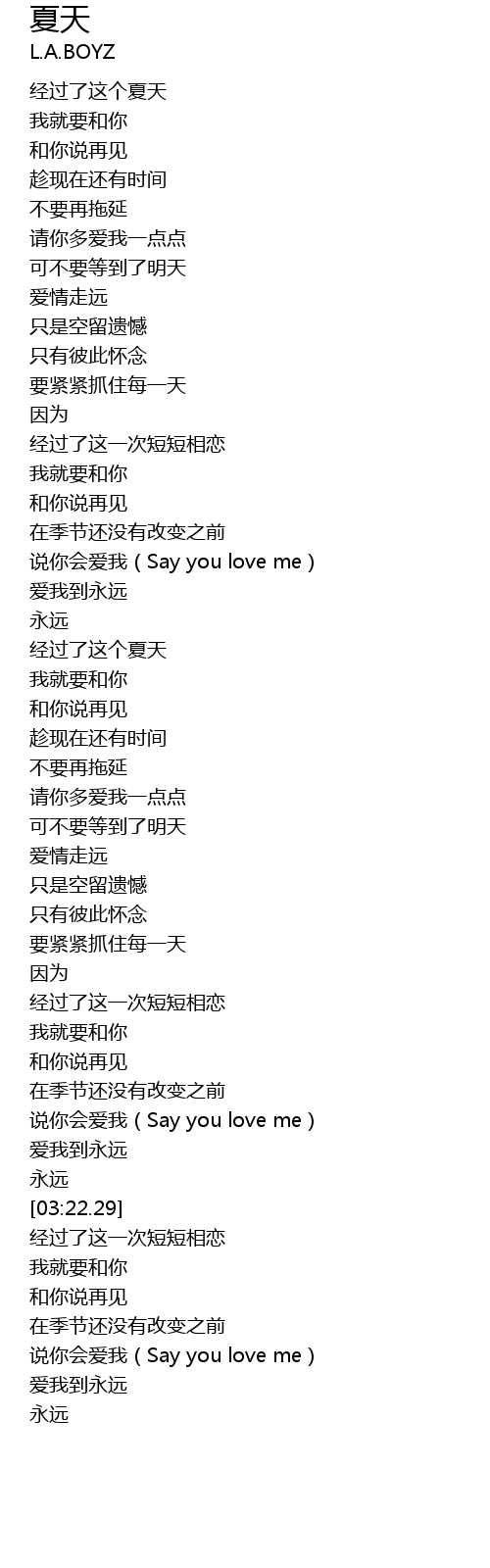 | [03:40.63] | shuo ni hui ai wo Say you love me |