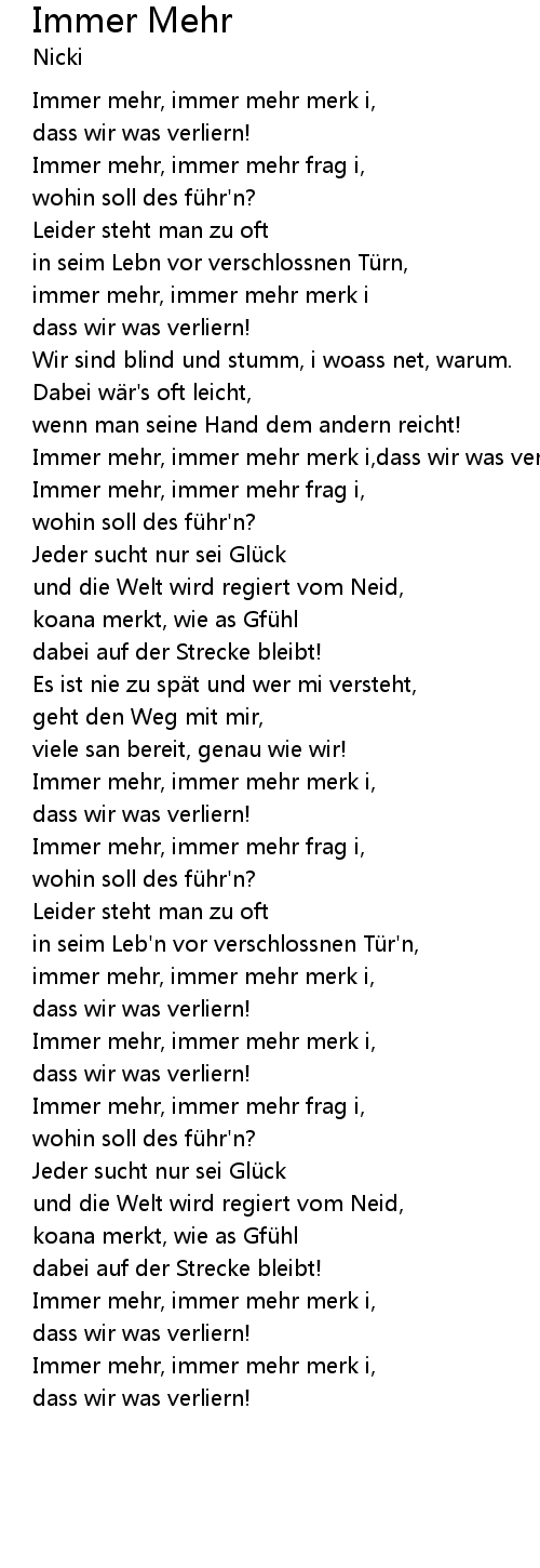 | Immer mehr, immer mehr frag i, | |