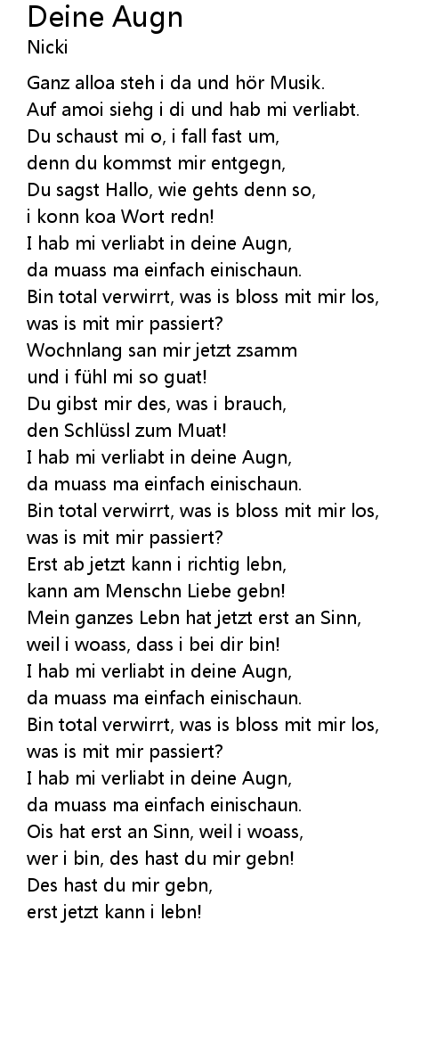 | Auf amoi siehg i di und hab mi verliabt. | |