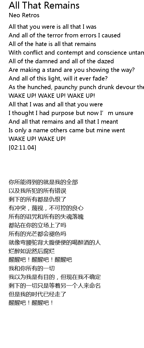 | [00:18.35] | All of the hate is all that remains |