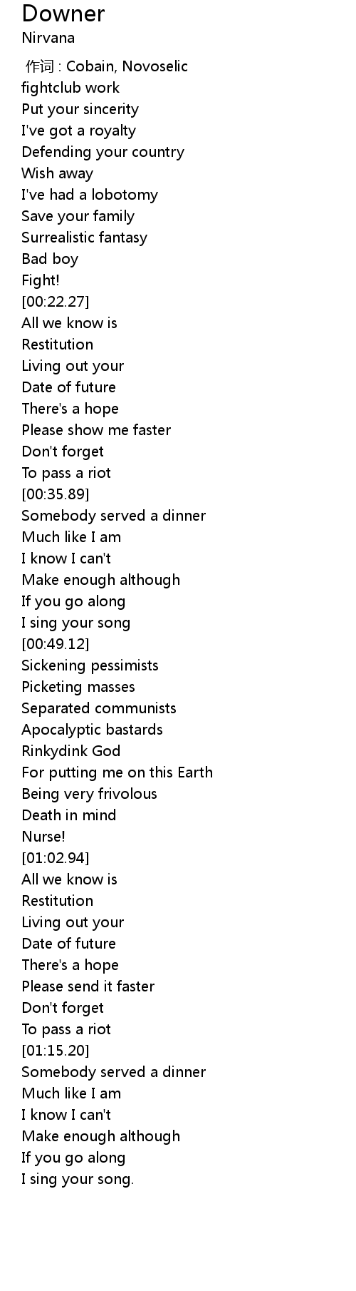 | [00:00.00] | zuò cí : Cobain, Novoselic |