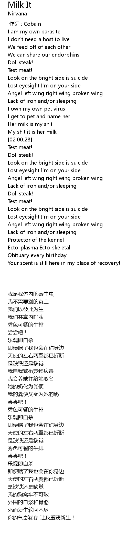 | [01:56.55] | 我的粪便又变为她的奶 |