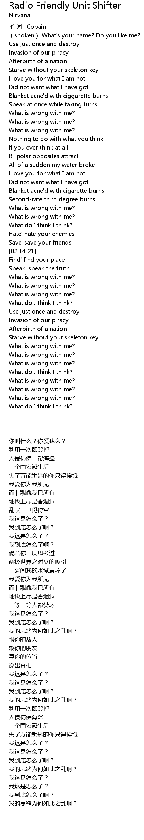 | [02:32.86] | What is wrong with me? |