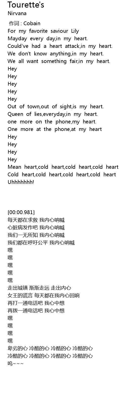 | [01:03.331] | Mean heart,cold heart,cold heart,cold heart |