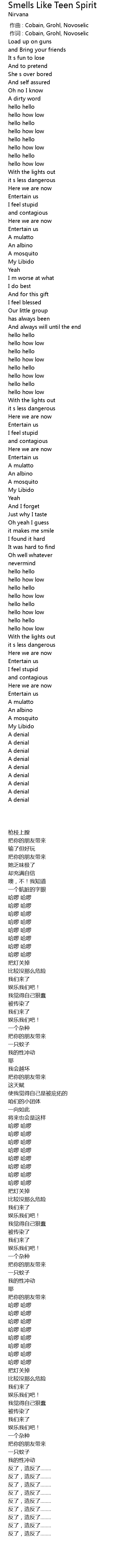| [00:01.00] | 作词 : Cobain, Grohl, Novoselic |