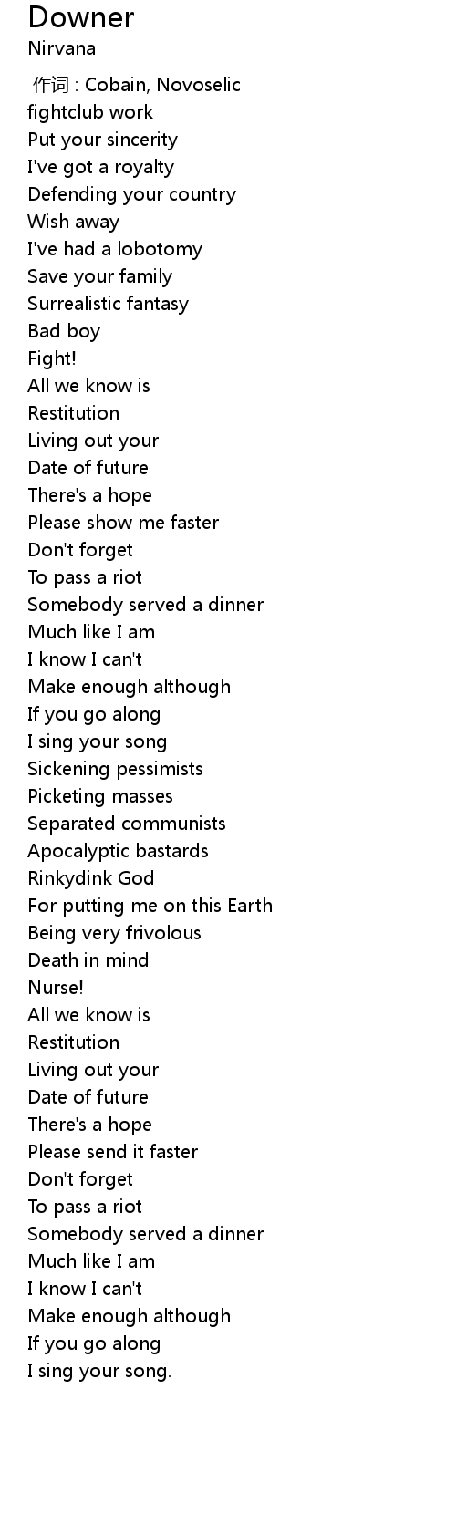 | [00:00.00] | zuò cí : Cobain, Novoselic |