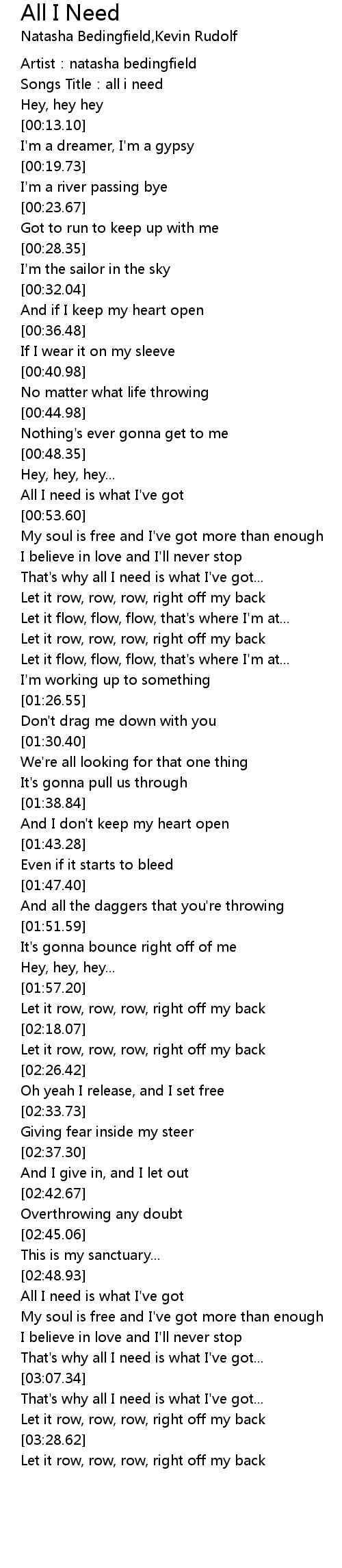 | [01:02.17] | That's why all I need is what I've got... |