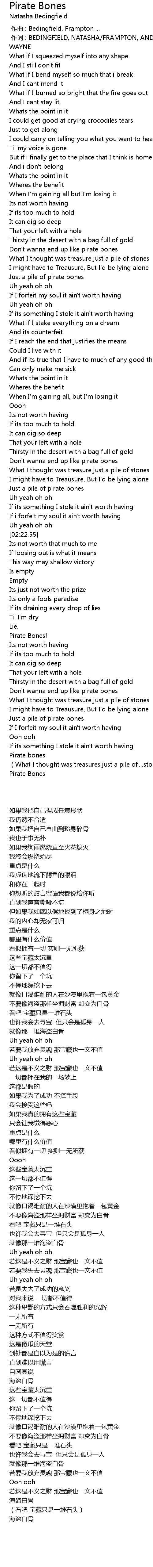 | [03:21.68] | Pirate bones |