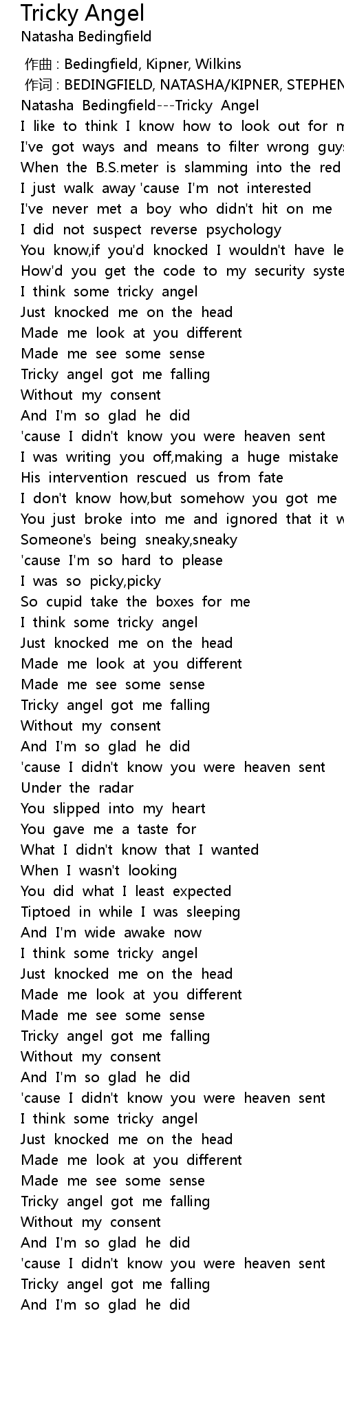 | [00:03.80] | Natasha Bedingfield---Tricky Angel |