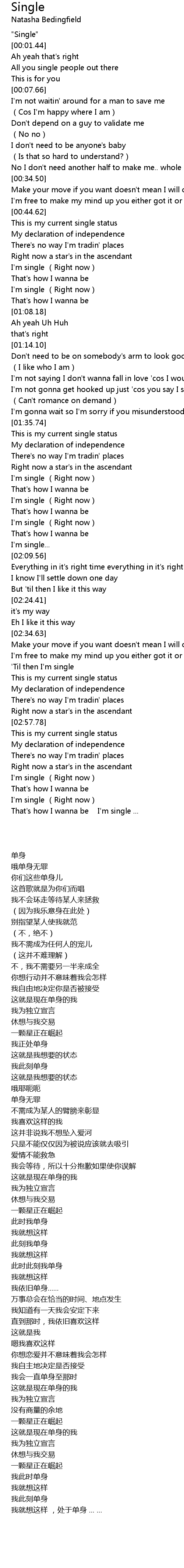 | [02:00.47] | I'm single (Right now) |