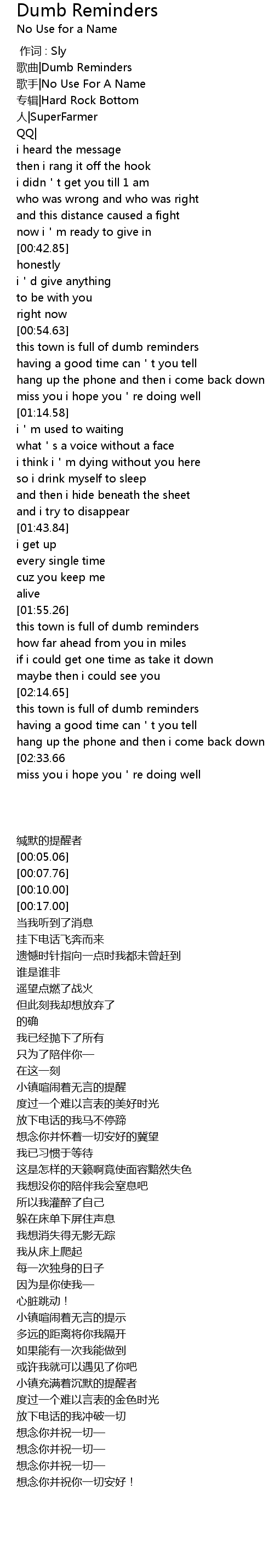 | [00:00.00] | gē qǔ Dumb Reminders |