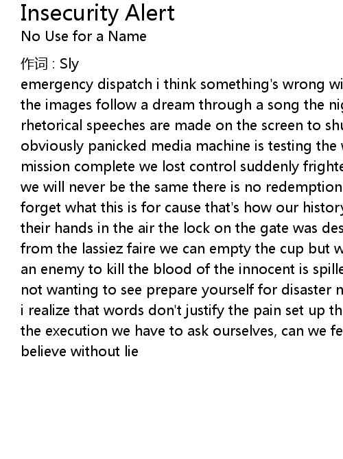 | 歌曲 | Insecurity Alert |