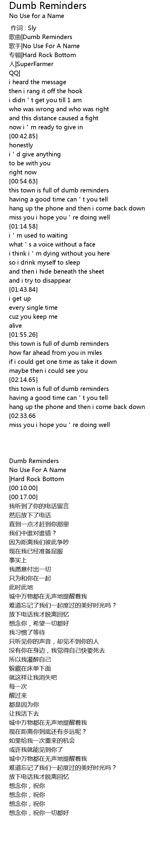 | [00:00.00] | gē qǔ Dumb Reminders |