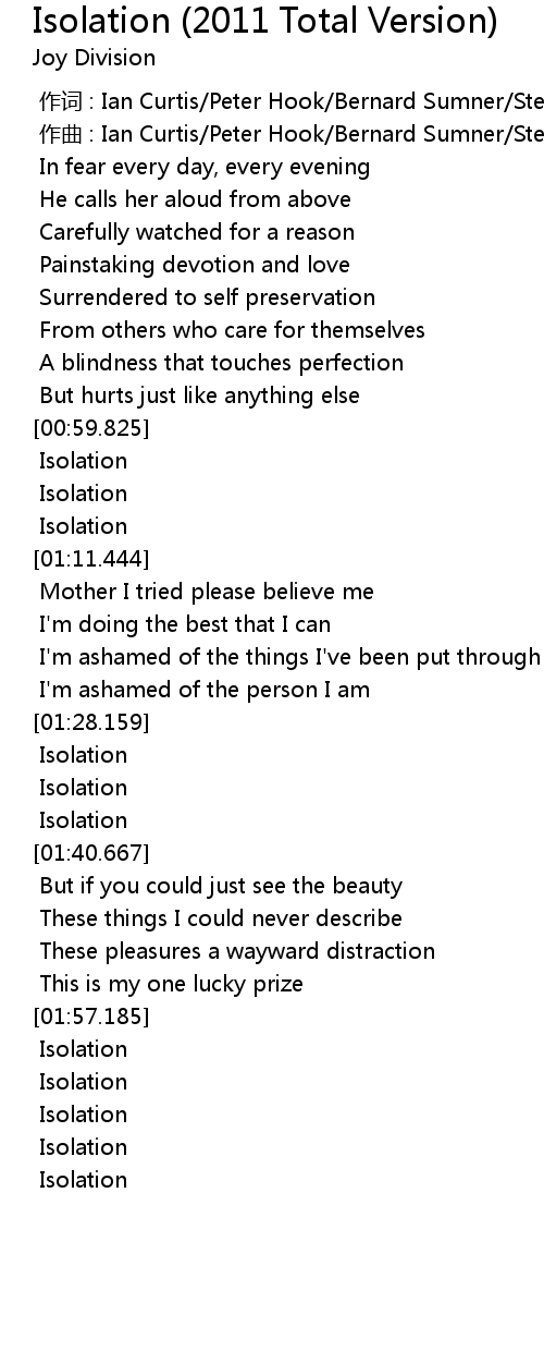 | 歌曲 | Isolation (2011 Total Version) |