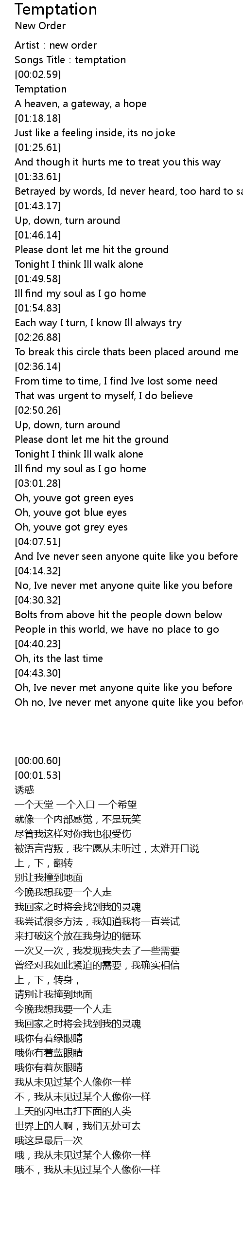 | [00:01.53] | Songs Title: temptation |