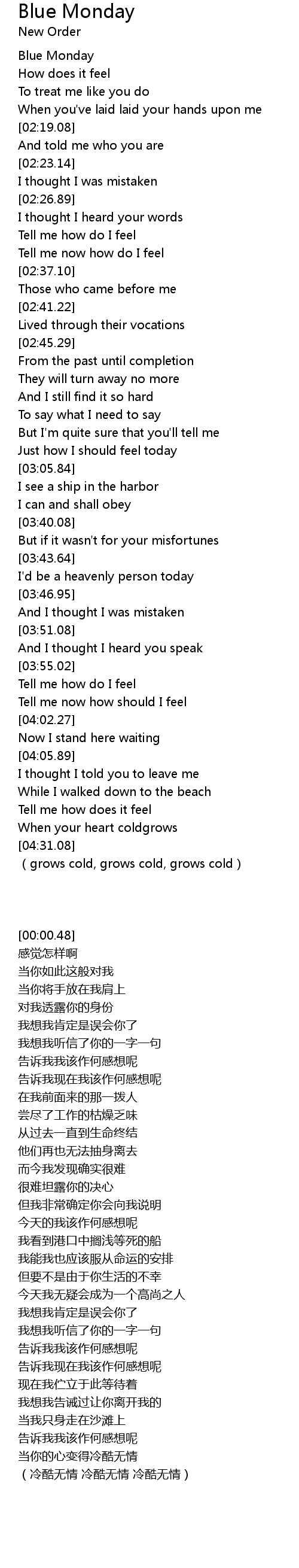 | [00:00.48] | Blue Monday |
