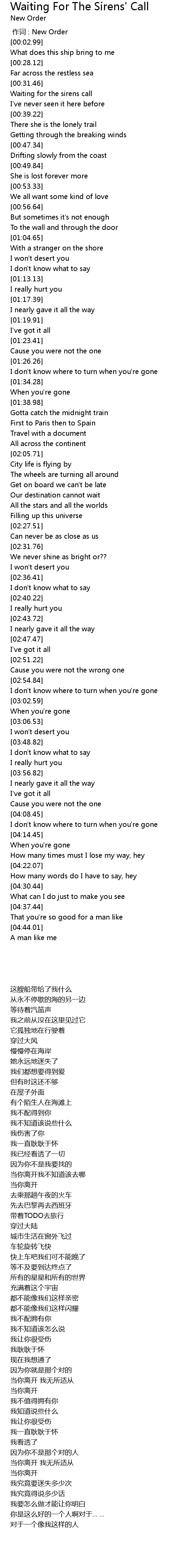 | [00:00.00] | 作词 : New Order |