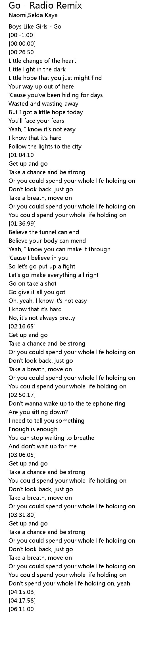 | [04:05.02] | Don't spend your whole life holding on, yeah |