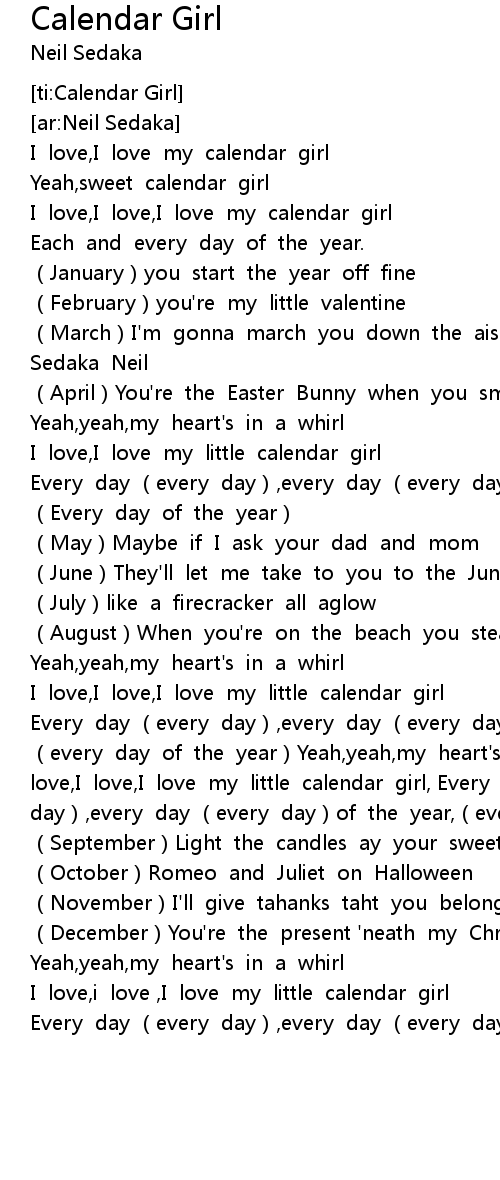 | [00:35.67] | I love, I love my little calendar girl |