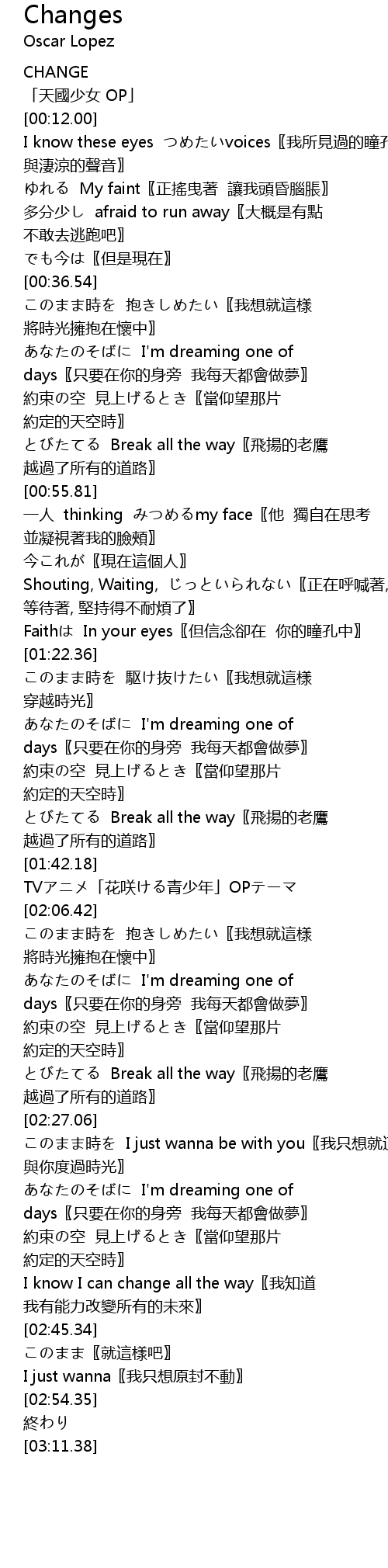 | [02:41.15] | I know I can change all the way〖我知道 我有能力改變所有的未來〗 |