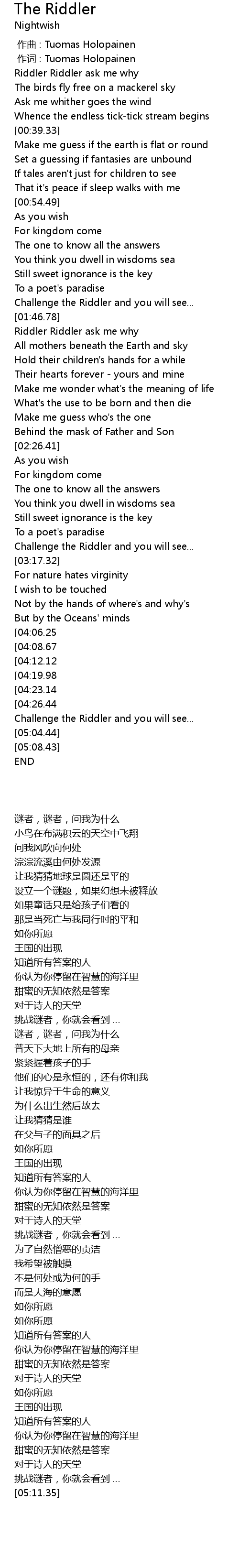 | [00:00.00] | 作曲 : Tuomas Holopainen |