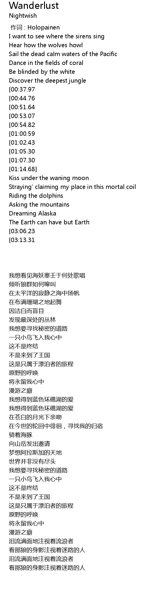 | [03:42.96][03:13.31] | See the mirrors of a wolf behold the pathfinder |