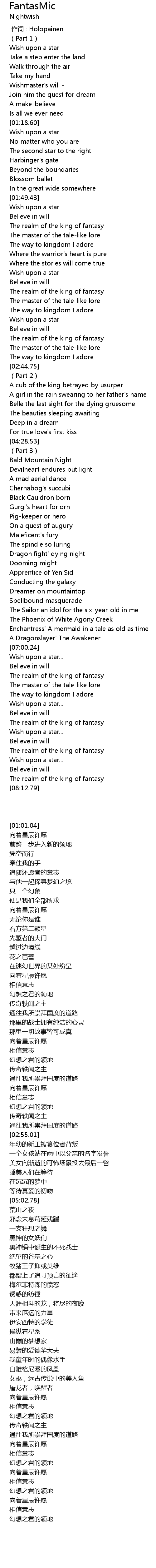 | [00:00.00] | 作词 : Holopainen |