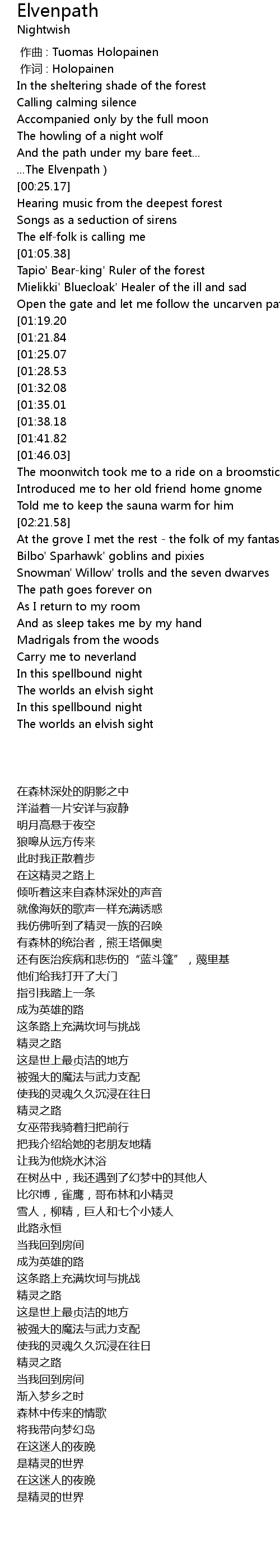 | [02:57.46][01:41.82] | Elvenpath |
