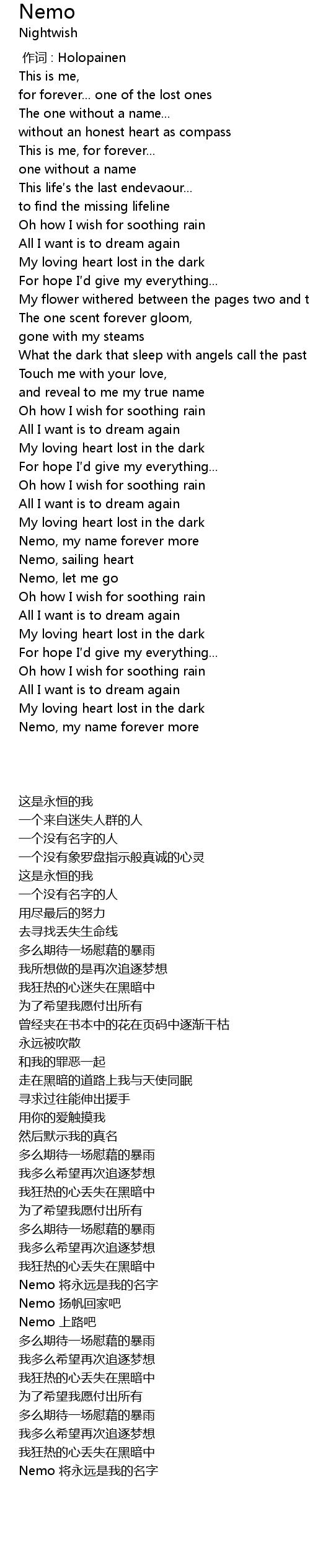 | [03:43.450] | Nemo 将永远是我的名字 |