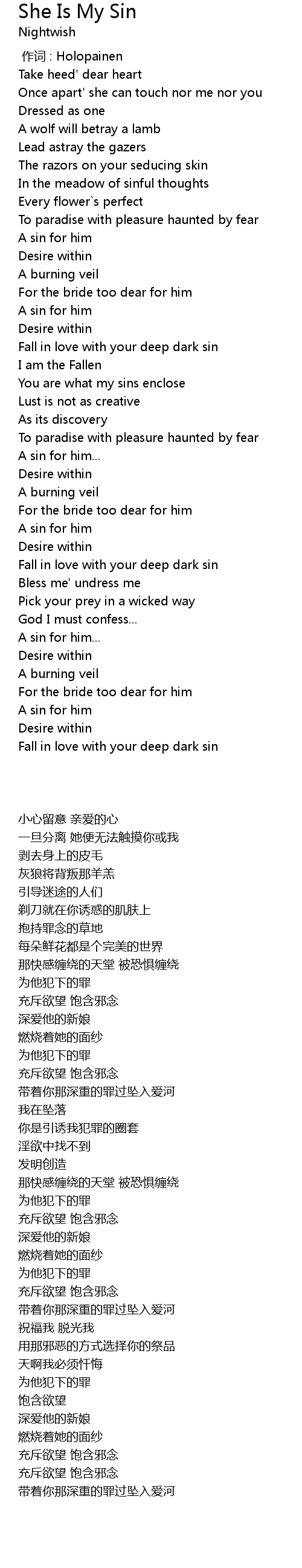| 歌曲 | She Is My Sin |