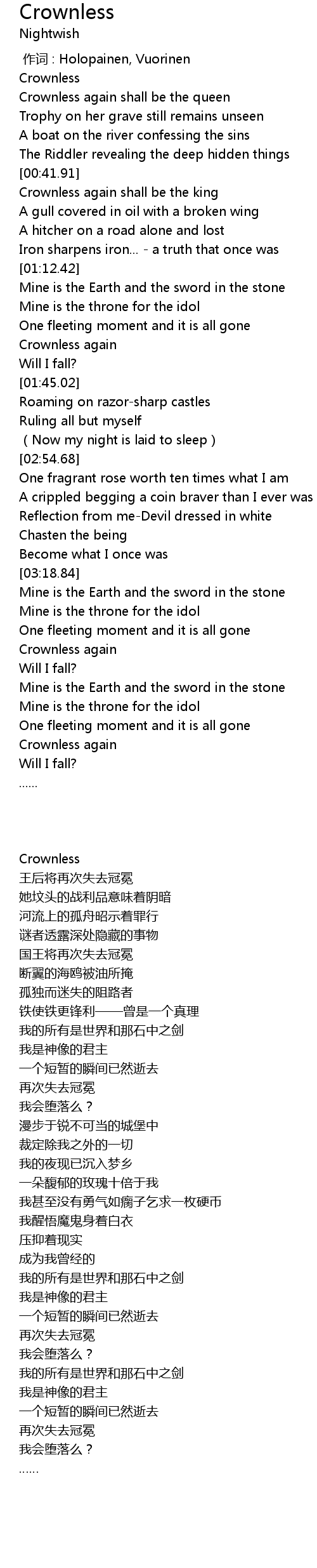 | [00:00.00] | zuò cí : Holopainen, Vuorinen |