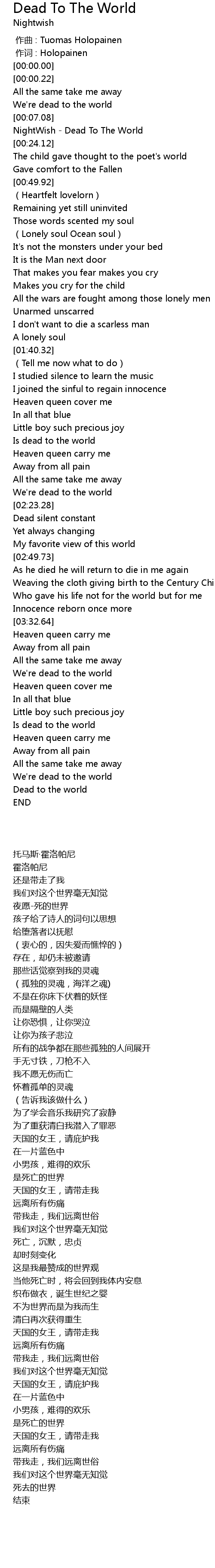 | [00:00.00] | 作曲 : Tuomas Holopainen |