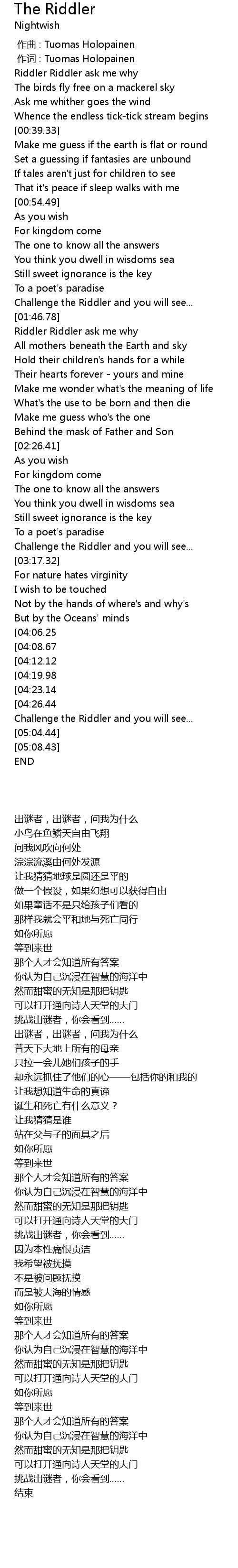 | [00:01.00] | 作词 : Tuomas Holopainen |