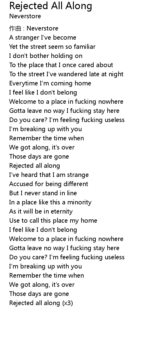 | 歌曲 | Rejected All Along |