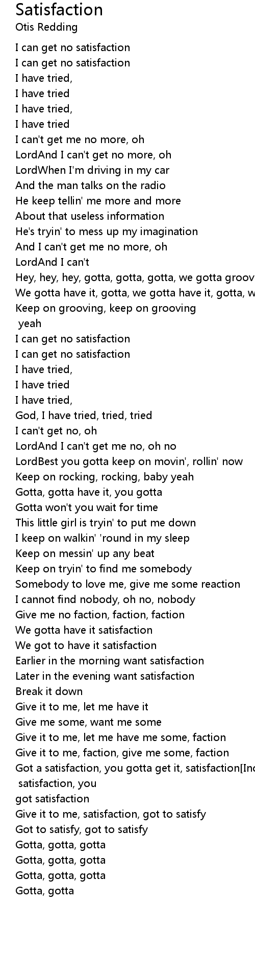 Got a satisfaction, you gotta get it, satisfaction[Incomprehensible] satisfaction, you gotta get it, satisfaction[Incomprehensible] satisfaction, you got satisfaction