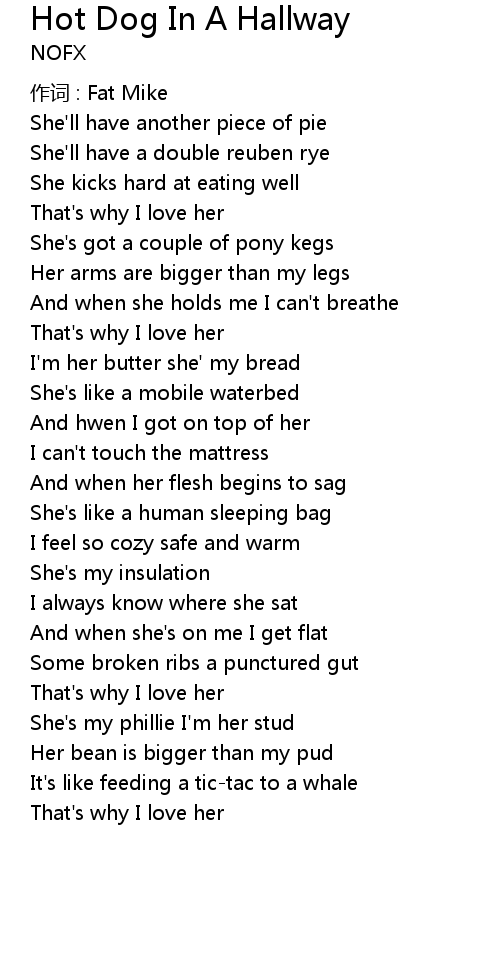 | 歌曲 | Hot Dog In A Hallway |