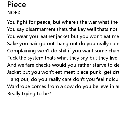 Jacket but you won't eat meat piece punk, get drunk, sake your hair go out, |
