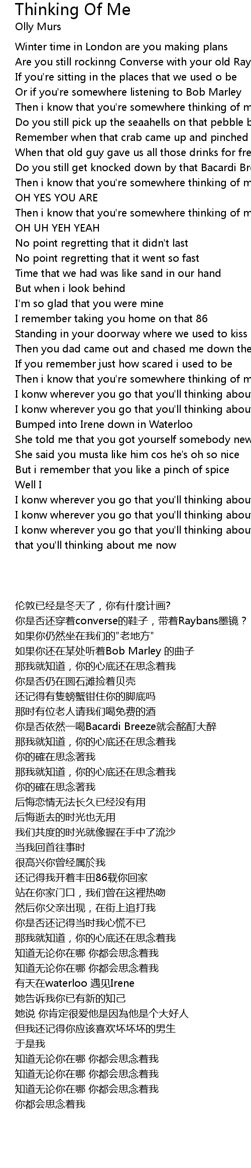 Then i know that you're somewhere thinking of me |