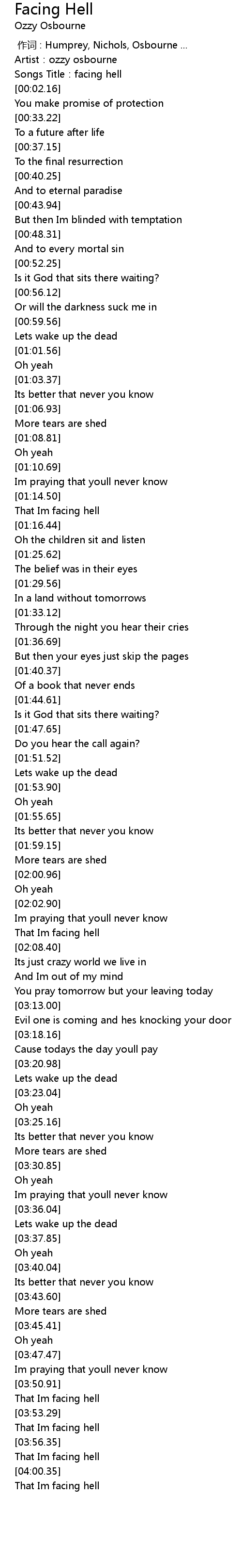 | [00:00.00] | 作词 : Humprey, Nichols, Osbourne ... |